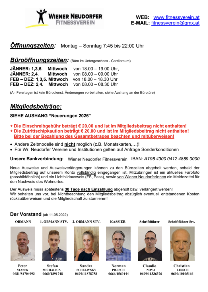 Bankverbindung: „Wiener Neudorfer Fitnessverein“